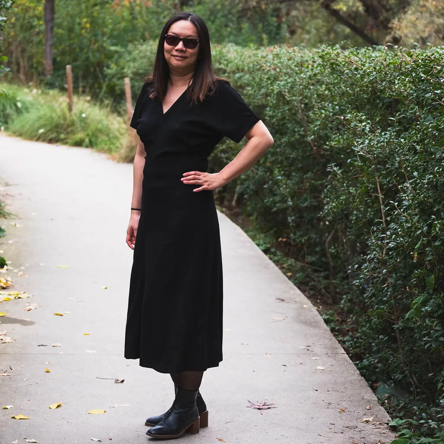 J’adore la couleur de ce tissu. Le rose framboise, c’est vraiment une passion. Il me va parfaitement au teint et s’adapte aussi bien à ma garde-robe d’été que d’hiver.