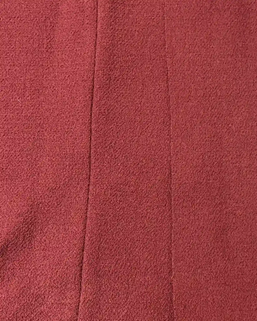 J’ai commandé chez Sacrés Coupons ce joli crêpe de laine bordeaux, et j’ai pris la doublure sur place, dans un coloris assorti. Mon crêpe de laine est un petit peu épais par rapport au tissu recommandé je pense, ce qui fait que ma robe est vraiment une robe d’hiver !